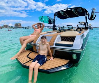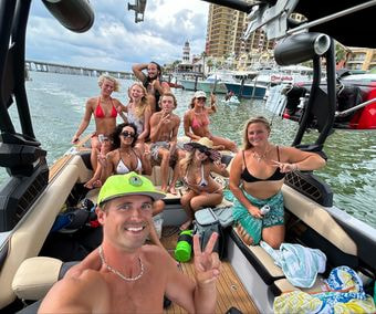 Book your unforgettable 2025 adventure to Crab Island today! Our brand-new Super Air Nautique is built for maximum fun up to 13 people! Featuring custom leather seating with wrap around lounge seating, the best sound system on crab island with12” subs & additional rear facing speakers. There’s plenty of room for your group, and the ultimate way to experience the water. Our listed price includes the entire boat for all guests so you can enjoy the stunning Emerald Coast in comfort & style.