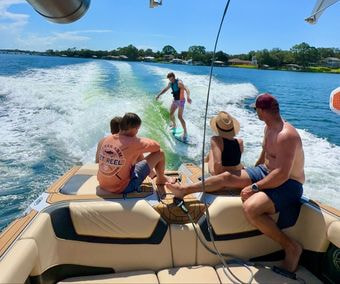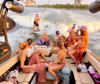 - Luxury watersports experience aboard a Super Air Nautique Ultimate Wake Boat