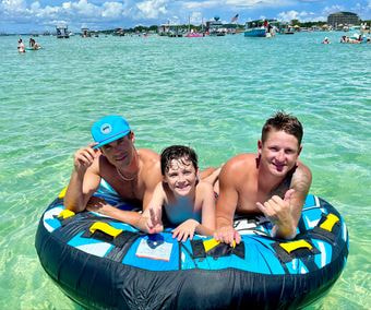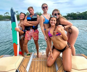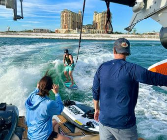 Book your Ultimate 2025 adventure to Crab Island today! Our brand-new Super Air Nautique is built for maximum fun whether you’re Tubing, Surfing, or Hanging at Crab Island! Featuring 3 giant ballast for a giant continuous surf wave, premium leather seating, 12” Subs, the best sound system on crab island, the most luxurious surfing experience, and access to all our tubes & new phase 5 Surfboards! Our listed price includes the entire boat, amenities, & surf lessons from a professional surfer for all guests so you can enjoy the stunning Emerald Coast in comfort & style.